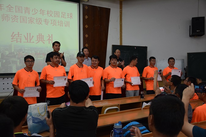 2015年8月15日下午2:30,为期15天的全国青少年校园足球骨干团队国家级专项培训伟德官网第二期培训班圆满结束,全体学员顺利结业。典礼在教学六号楼会议厅举行,出席结业典礼的有bevictor伟德官网经理陈仁伟、副经理雷军平、杨小永副教授等。结业典礼由bevictor伟德官网副经理雷军平主持,陈仁伟经理对各位学员能够顺利毕业表示祝贺,感谢任课教师、管理人员和班主任的付出与努力,强调了校园足球是未来足球发展的主阵地,发展校园足球,体育教师的力量至关重要。此外还要学会感恩:第一,感恩国家对校园足球的大力支持,可以给我们这次宝贵的学习机会。第二,感恩老师们这15天的付出,兢兢业业,不怕苦、不怕累。第三,感恩自己,把此次培训当作自己事业进步和知识更新的加油站,努力提升自己的理论水平和实践能力,为校园足球做出更大的贡献。杨小永副教授分别从培训的基本情况、雄厚的培训团队团队及场地器材保障、后勤保障及管理服务工作、学员的学习表现等几个方面对此次培训进行了总结与汇报。培训学员马学文代表全体学员进行了发言,与全体学员分享了此次培训的收获与感受,并对如何成为一名优秀的足球教师和未来小公司园足球的开展进行了展望。为学员们颁发了结业证书并合影。