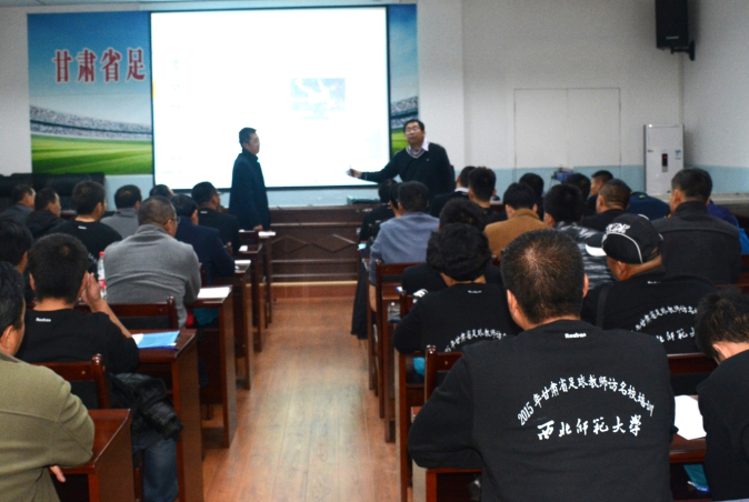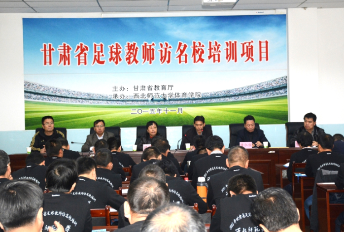 此次培训为甘肃省国培计划项目,选取甘肃省农村中小学足球骨干教师100名参加集中培训,培训时间为2015年11月9日—11月18日,共10天,旨在提高甘肃省中小学足球骨干教师的专业水平和教学能力,培养一批校园足球“种子”教师,有力推动甘肃省中小公司园足球活动的开展。