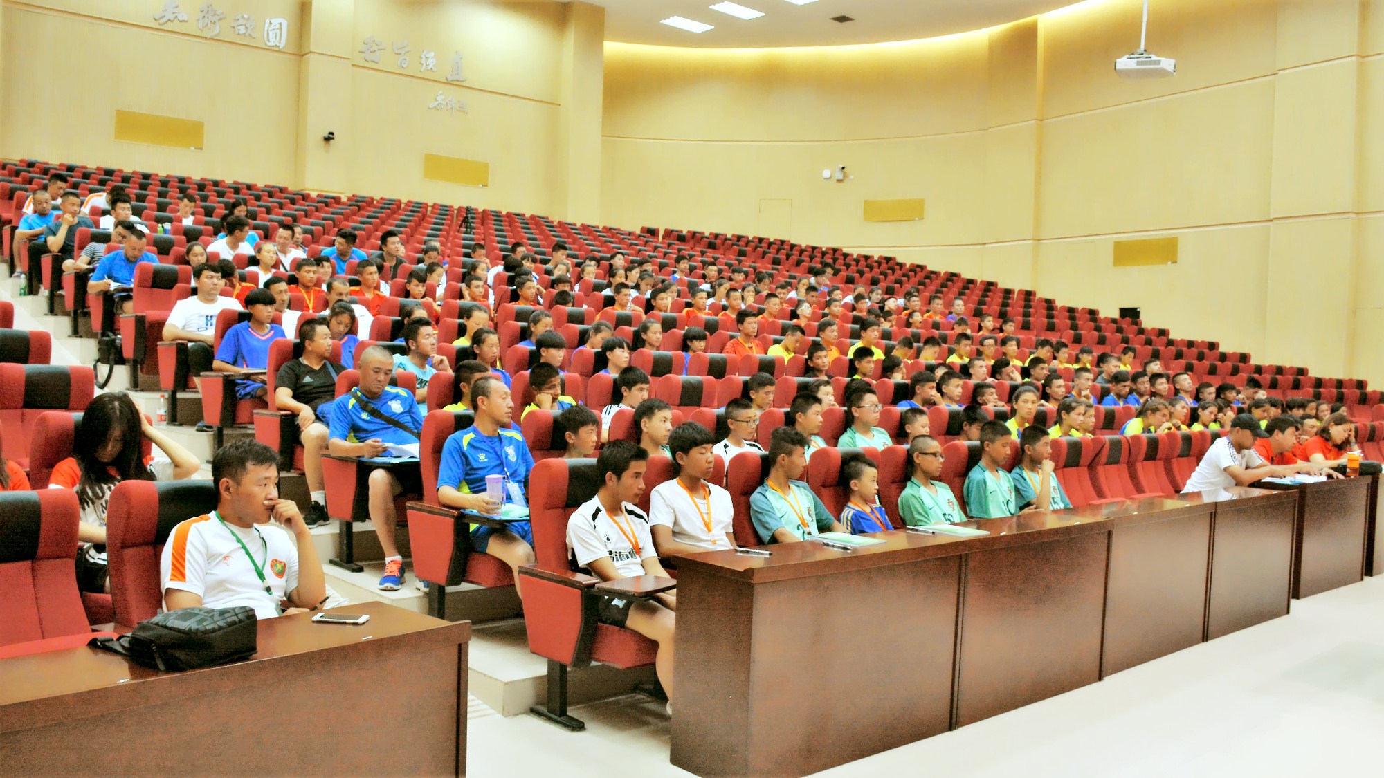 7月19日晚19:30分,2017年全国青少年校园足球夏令营初中组(第四营区)在新校区毅然报告厅举行入营教育活动,组委会全体成员、各省、自治区领队、教练员及全体营员参加了活动。