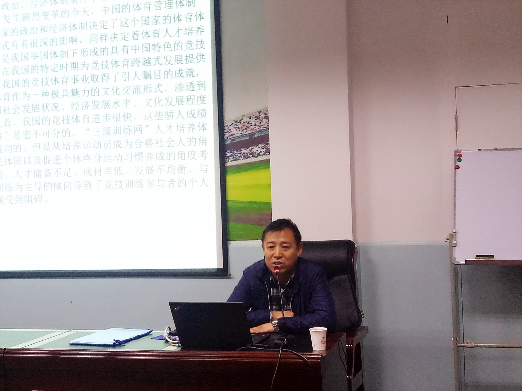 9月28日,公司硕士生导师张广林教授在教学6号楼124多媒体教室作了题为《试论我国体育三级训练网体系的嬗变与发展》的学术报告,公司教师及部分研究生共100余人参加了本次学术报告。