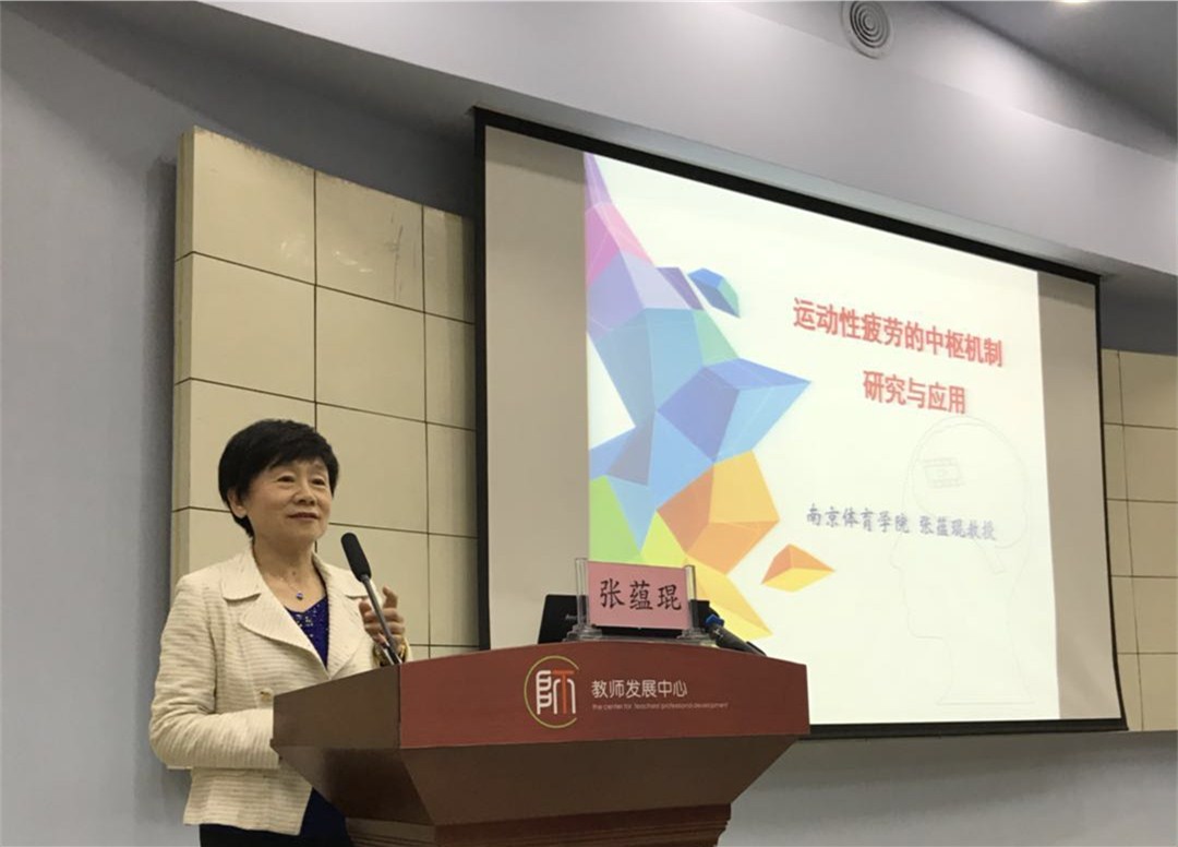 张教授介绍了运动性疲劳是一个复杂的生理现象,其发生机制主要包括外周机制与中枢机制,从而向在场师生展示了影响运动性中枢疲劳发生发展及恢复过程的众多因素,重点阐述了不同运动状态下中枢神经递质的变化与中枢疲劳、环境温度及运动对中枢机能的影响,以及营养补充促进中枢疲劳恢复的作用与机制等方面的研究现状。