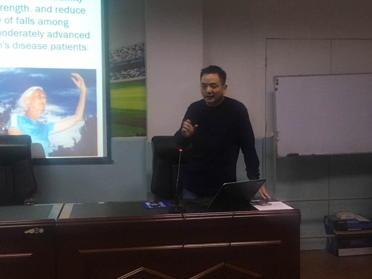 12月28日,公司硕士生导师王宗兵副教授在6号楼124多媒体教室作了题为《太极拳增强PD患者姿势稳定性》的学术报告,公司研究生共100余人参加了本次学术报告。