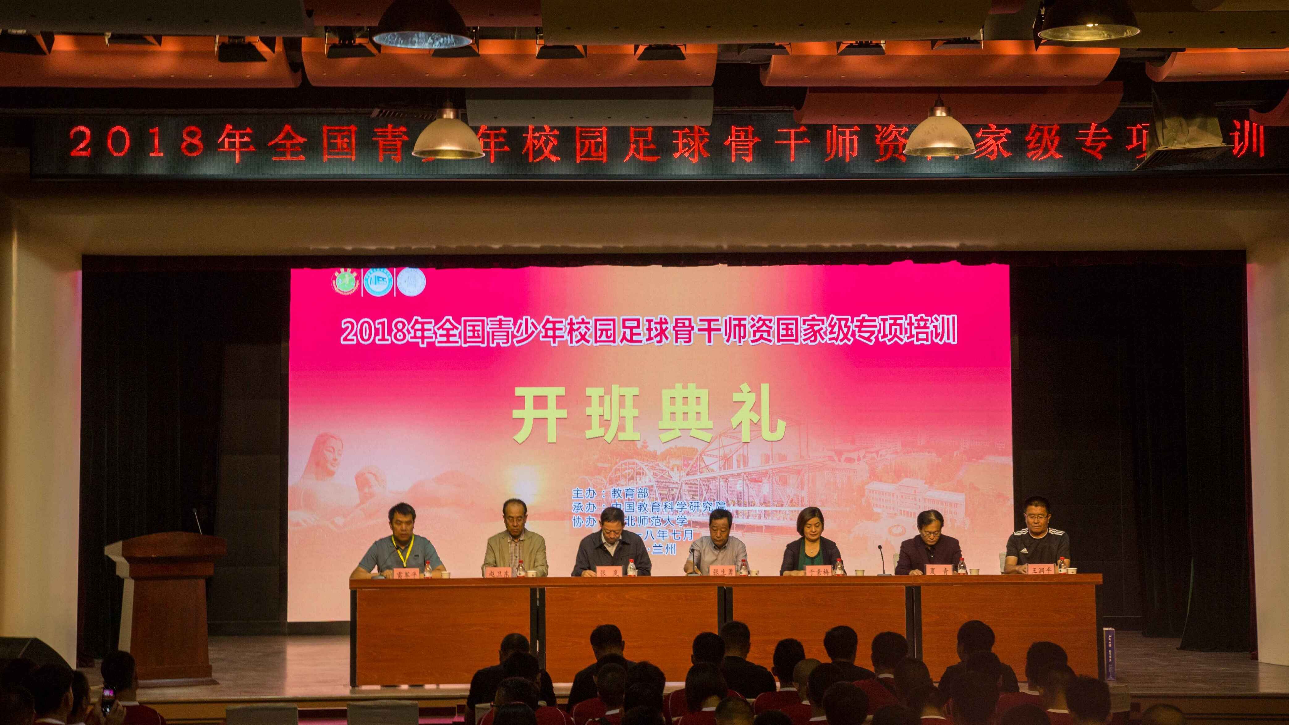 2018年7月9日上午,2018年全国青少年校园足球骨干团队国家级专项培训班在公司开班。中国教育科学研究院体卫所副所长于素梅教授、甘肃省校园足球改革领导小组办公室主任、甘肃省教育厅体卫艺处处长张岚同志、公司副董事长张生勇同志和公司党委书记赵卫东研究员、副经理雷军平同志等负责人及来自甘肃省、宁夏回族自治区共214名教师参加了开班典礼。
