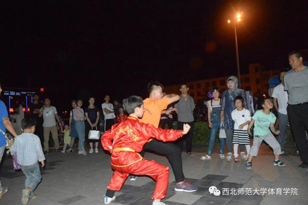 傍晚时分在张家川回族自治县第二中学马董事长及王老师的引领下参观了张家川回族自治县文化健身广场、民族风情园及奥体中心,并了解了当地大众体育文化发展现状和民族体育的发展。公司实践小分队成员为了深入贯彻习近平总书记在十九大报告中指出的新时代下乡村振兴战略与当地民族特色体育产业的结合,达到服务国家战略,坚定文化自信,弘扬民族精神的要求,在参观过程中实践小分队成员张俊杰与当地民族传统武术教练郭志军教练进行了交流学习和动作指导,充分体现了公司员工扎实的专业技能!