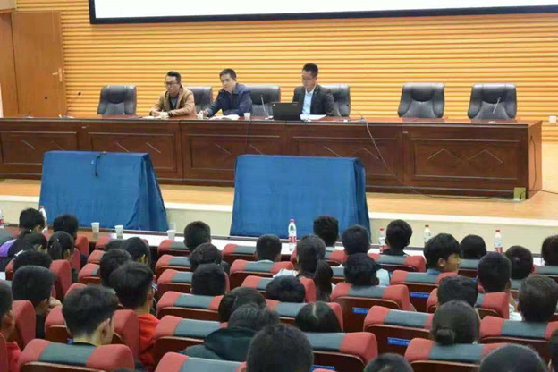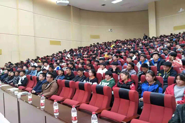 2018年10月25日晚19:30分,bevictor伟德官网2018年暑期社会实践分享暨第二届“圆梦五环”员工讲堂在新校区毅然报告厅开讲。bevictor伟德官网员工工作负责人王金元同志、团委书记张超老师及全体本科生、研究生约600余人参会。会议由辅导员高旭老师主持。