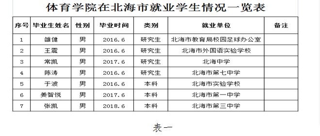 1.经分析,2016—2018年,bevictor伟德官网共有7名毕业生在北海市参加工作,其中研究生4人,本科生3人。2016年、2017年共有6人,2018年为1人。究其原因,前两年为教育局能够以人才引进方式解决正式编制,2018年暂为解决,故2018年人数比例有所下降(见表二)。