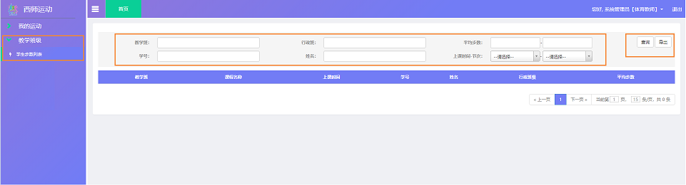 选择教学班级下的员工步数列表,展示自己教学班下所有员工的运动数据
