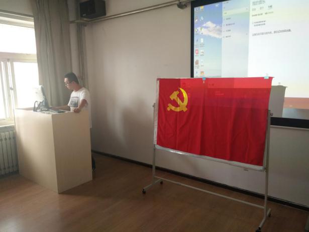 鲜红的党旗,简而有力地为现场渲染出庄重严肃的气氛,在雄壮的《国际歌》中,宣誓仪式正式开始。第二支部书记高旭老师带领预备党员进行宣读入党誓词。