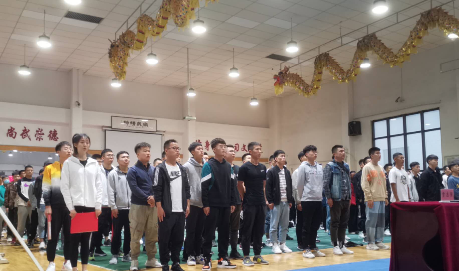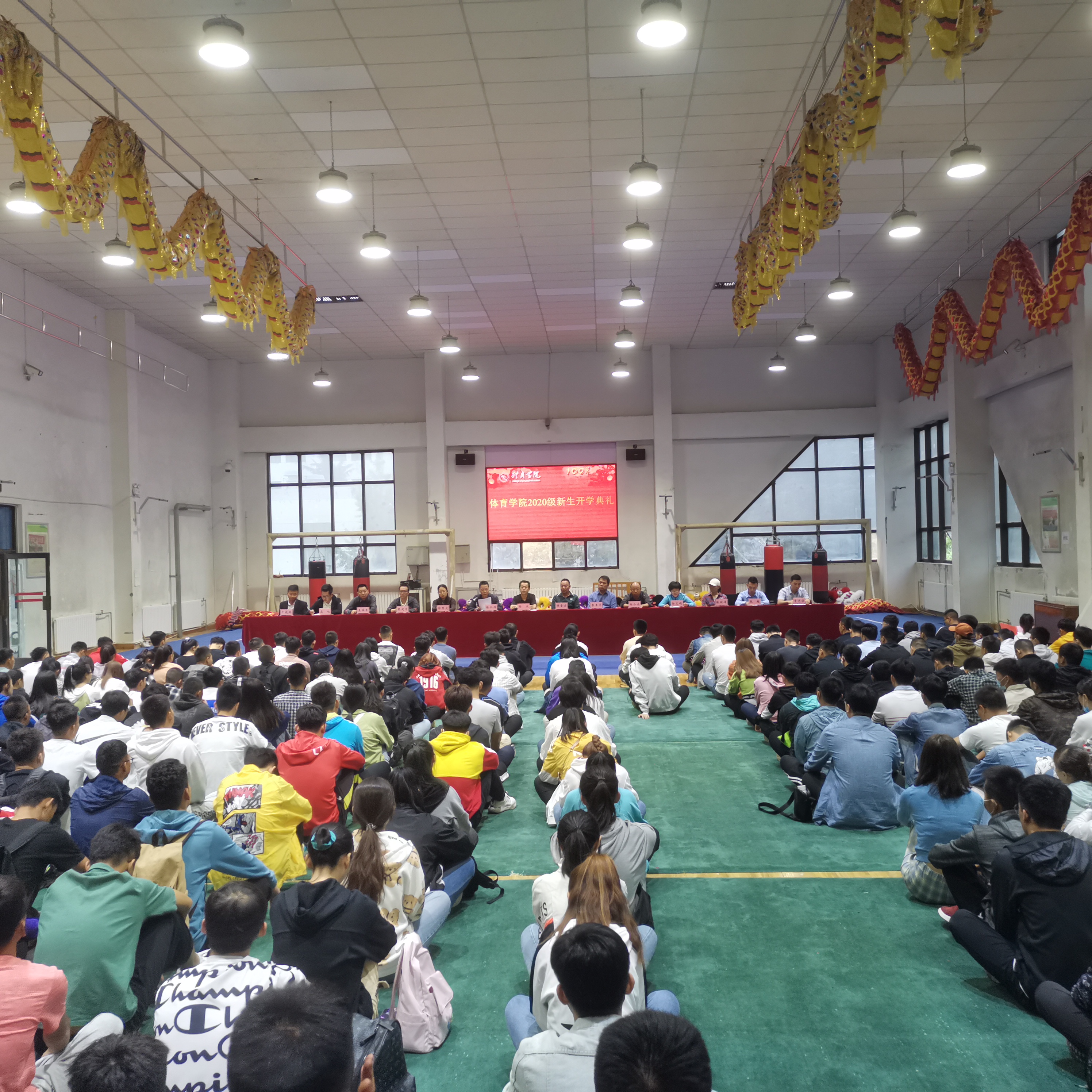 2020年9月11日上午9:00,bevictor伟德官网2020级新生开学典礼暨入学教育大会在武术馆隆重举行。公司领导班子、系主任、辅导员、新生班主任及全体新生共270余人参加了开学典礼。典礼由党委书记杨杰主持。