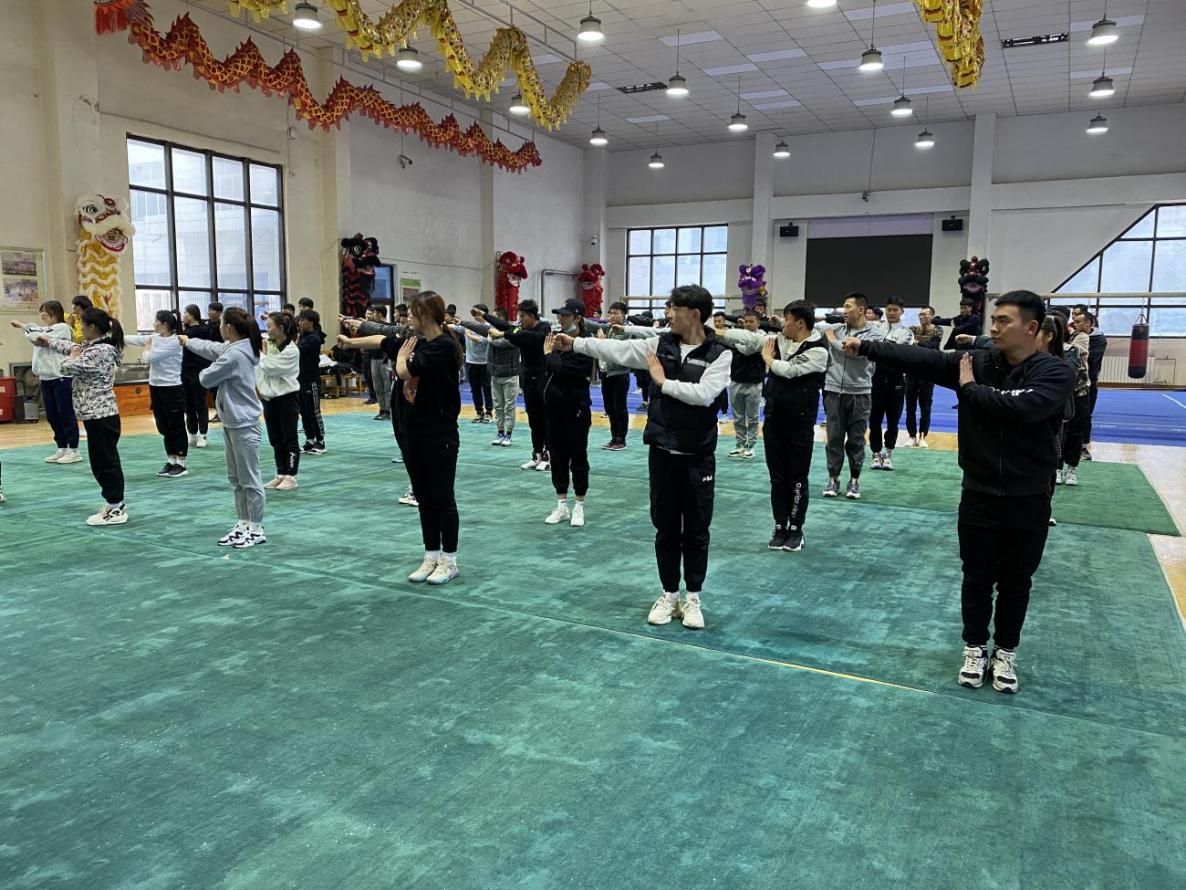 支教同学在温兵老师和全体武术专业教师带领下,积极的投入了《千字文武术操》的学习培训中。按照培训计划,本次培训时间为3月7日至8日两天。