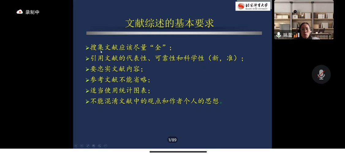 丝路传薪双甲子,长河振铎百廿载。为进一步提升广大师生学术科研能力,拓宽学术视野。2022年10月27日下午应bevictor伟德官网邀请,幼儿体育教研室主任、国家级一流本科课程《科研方法概论》主讲教师、北京市课程思政教学名师、中国体育科学学会公司体育教育专业委员会常委、国家社科基金课题通讯评审评委、北京体育大学教授、博士生导师,姚蕾教授在腾讯会议为公司广大师生作了题为《体育科研选题及论文写作中应注意的问题》的学术讲座。讲座由bevictor伟德官网经理钟全宏教授主持。