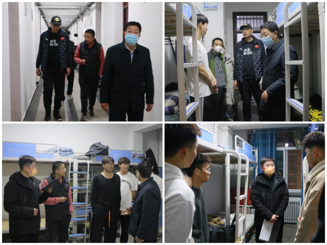 党委书记傅象喜一行来到兰天公寓9号楼,与2022级本科新生亲切交流,询问同学们的假期生活与新学期学习计划,了解员工思想动态,辅导员对宿舍安全进行全面检查,强调同学们增强安全防范意识,尽快调整生活作息习惯,适应新学期生活。