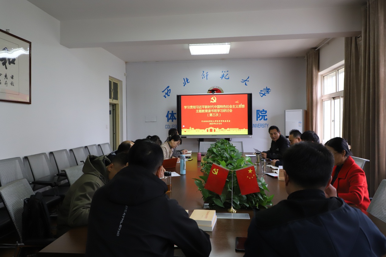 5月10日,公司党委召开主题教育读书班第三次集中学习研讨会。副经理刘文荣领学了《重整行装再出发,以永远在路上的执着把全面从严治党引向深入》 (《习近平著作选读》第二卷)第118-127页),副经理郭秀文领学了《培养德智体美劳全面发展的社会主义建设者和接班人》《提高政治判断力、政治领悟力、政治执行力》(《习近平著作选读》第二卷 第195-203页、第391-393页)相关篇目。副经理郭秀文牵头开展了“大学体育选项课程设置与员工需求间的关系”交流研讨,刘文荣作了“体育公共资源有效利用” 调研情况书面交流。