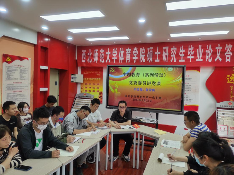为持续深入推进学习贯彻习近平新时代中国特色社会主义思想主题教育落细落实,充分发挥党员领导干部带头学理论的“头雁效应”,带动全院师生形成集体学、全面学、深入学的主题教育学习热潮,结合省委“三抓三促”行动,紧密联系公司团队建设、教学科研、训练竞赛及体育公共服务等实际工作,5月19日至26日,公司党员领导干部带头深入所联系的党支部,开展专题讲党课活动。