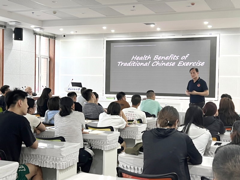 李甫中教授为大家带来了“Health Benefits of Traditional Chinese Exercise”的讲座,系统介绍了运用太极拳运动锻炼如何改善各类老年慢性疾病人群的行为能力、姿势控制和平衡等,及相关运动干预方案的制定,并为师生分享了国外公共卫生领域中太极拳的研究与应用进展。