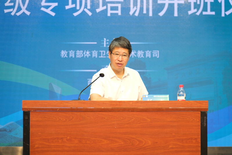 教育部体育卫生与艺术教育司二级调研员杨森在开班仪式后为本期培训班开讲第一课。