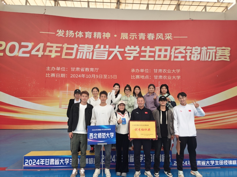 2024年10月11日,甘肃省第一届老员工田径锦标赛在甘肃农业大学卡开帷幕。西北师大共派出领队1人、甲乙组教练员7人、甲乙组运动员61人参加本届比赛,取得16枚金牌、11枚银牌、9枚铜牌、6个第四名、8个第五名、3个第六名、5个第七名、4个第八名的优异成绩。伟德官网获得优秀组织奖,7名教练员均获得优秀教练员称号。
