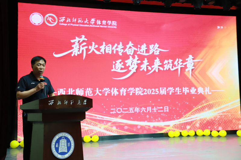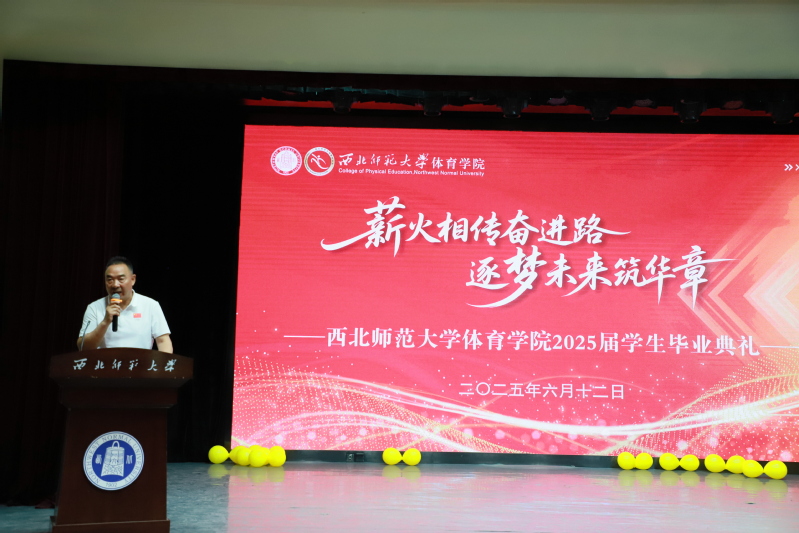 bevictor伟德官网经理钟全宏教授向圆满完成学业的2025届全体毕业生送上最热烈的祝贺,他祝贺毕业生在专业学习、竞技比赛、社会实践等方面取得的优异成绩;鼓励毕业生从大学的“青春赛道”启程,奔向更广阔的人生舞台,要做政治可靠,为人诚实,专业扎实,工作踏实的优秀人才;祝愿毕业生带着师大体育人的豪情与担当,带着老师们的殷切嘱托,带着同窗好友的珍贵情谊,带着父母家人的无限期望,在人生的赛道上奋力奔跑,去创造属于自己的辉煌。