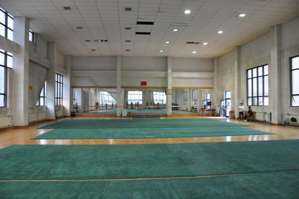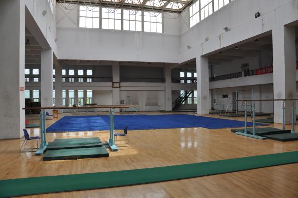 器械体操馆:建设于2003年,坐落于师大本校区,占地面积3380平方米,其一楼是兵乓球馆,二楼是体操馆。兵乓球馆有兵乓球桌26付、健身器材26件。体操馆里面有体操器械306件,器械体操馆全面的为专业训练和各类比赛提供了有利的保障。本馆外部造型新颖现代,令人过目不忘,为师生体育训练提供了十分惬意的场馆环境。