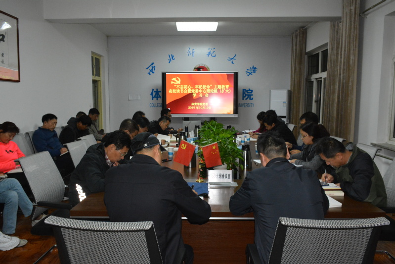10月10日晚,公司党委在三楼会议室召开了"不忘初心,牢记使命”主题教育夜校读书会暨各党委理论学习中心组(扩大)学习会议,集中学习了《体育强国建设纲要》,《国务院办公厅关于促进全民健身和体育消费推动体育产业高质量发展的意见》并进行了研讨。领导班子成员、党委委员、党支部书记、各系部主任等20余人参加了会议,会议由赵卫东书记主持。