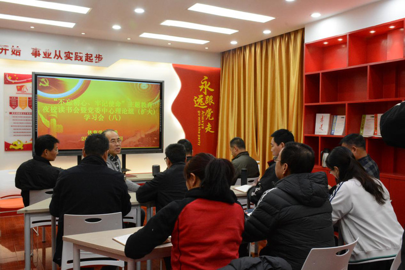 11月21日晚,公司党委在三楼党建活动室召开了第八次“不忘初心,牢记使命”主题教育夜校读书会暨党委理论学习中心组(扩大)学习会议。班子成员、党委委员、党支部书记、各系部主任等20余人参加了会议,会议由赵卫东书记主持。