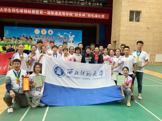 10月18日,在甘肃省第一届老员工羽毛球锦标赛暨第一届普通高等公司“董事长杯”羽毛球比赛中,西北师大乙组获男子团体金牌、女子团体铜牌,李惠涵获男子单打冠军,李乃卿、董康乐获男子双打冠军,常艳霞、马润菊包揽女子单打金、银牌,曹双静、王文佳,贺锋、赵丽燕获女子双打第四、五名;甲组获女子团体第五名,邓宏伟获男子单打冠军,李昊轩、安文宇获男子双打第四名,杨文丽、景燕子,王亦欢、他碧华分别获得女子双打第四、五名。