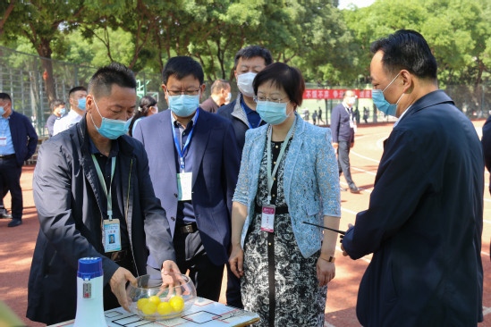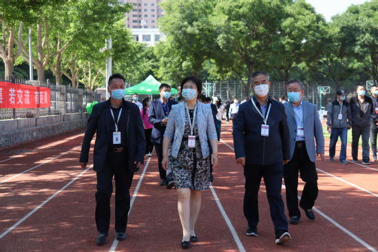 在体育类专业统一考试现场,王海燕一行沿体育高考疫情防控线路,先后深入公司西操场、东操场,实地查看了体育高考100米跑,立定三级跳远和铅球项目考试情况,并对考试使用的电子计时、激光测距等现代化技术手段做详细了解。