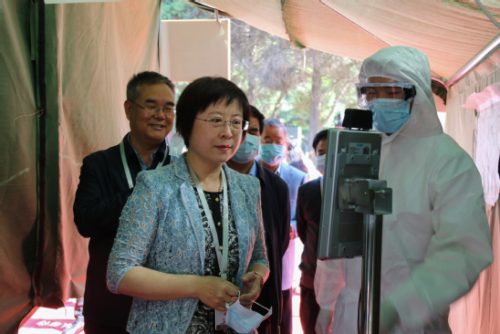 在硕士研究生考试复试现场,王海燕一行先后深入教育公司、化学化工公司,现场观摩研究生线上复试,并详细了解研究生复试现场环境、网络设备、复试流程、工作纪律等方面情况。