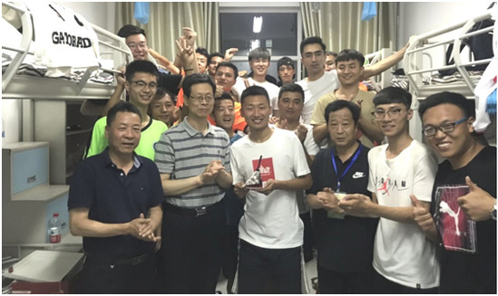在男生宿舍,当得知恰逢足球队员兰昊生日时,刘仲奎、张生勇和师生们为他送上生日祝福。