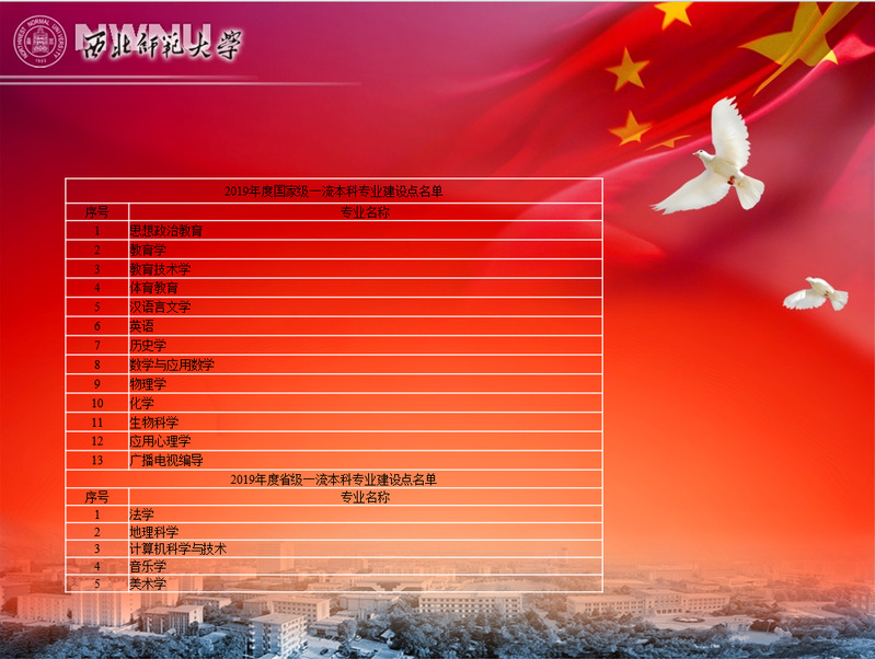 近日,教育部办公厅印发了《关于公布2019年度国家级和省级一流本科专业建设点名单的通知》(教高厅函〔2019〕46号),公布了2019年度国家级和省部级一流本科专业建设点名单。公司推荐申报的18个专业全部入选首批建设项目,其中13个专业获批国家级一流本科专业建设点,5个专业获批省级一流本科专业建设点。思想政治教育、教育学、教育技术学、体育教育、汉语言文学、英语、历史学、数学与应用数学、物理学、化学、生物科学、应用心理学、广播电视编导获批国家级一流本科专业建设点,法学、地理科学、计算机科学与技术、音乐学、美术学,获批省级一流本科专业建设点。